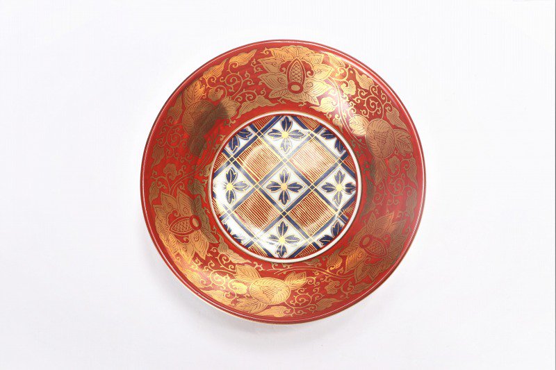 赤地に金彩模様が煌びやかで美しく目を引きます。