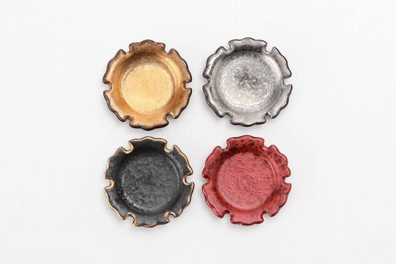 •  > ☆陶悦窯 黒柚子銀塗り 雪輪豆箸置き