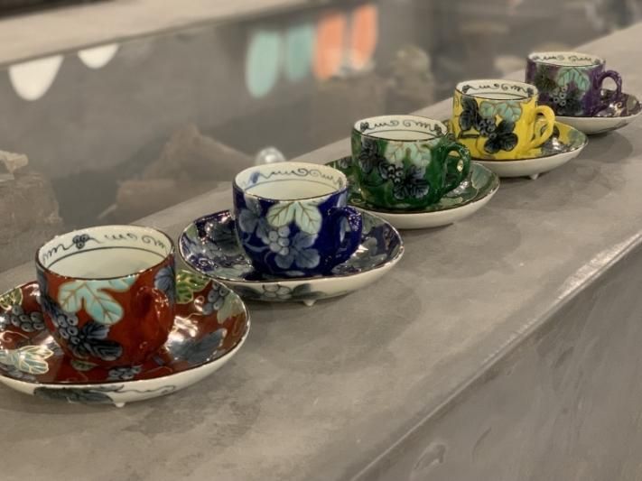 取手はぶどうのツタのようになっていたり、お皿の裏側まで絵付けされていたりとこだわりが感じられます。