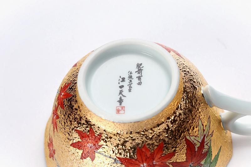 ○金龍窯 金彩紅葉(転写) コーヒー碗(木箱付)