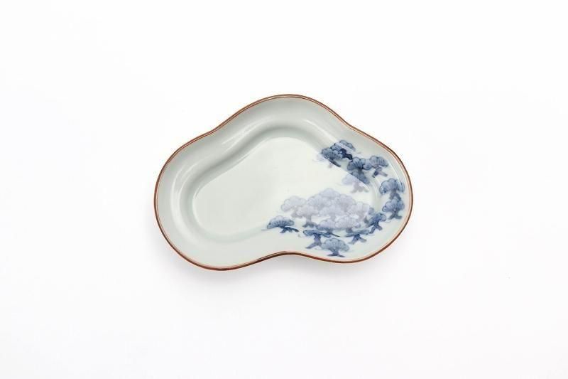 •  > △李荘窯 渕錆松絵(裏に松葉)州浜形皿