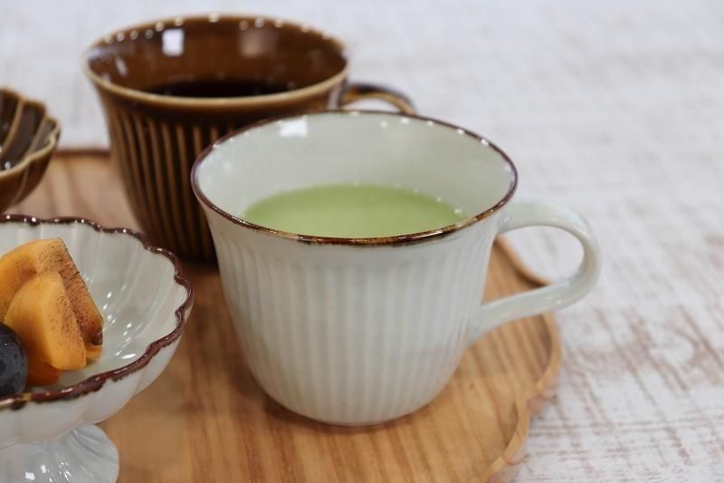 落ち着きのあるサビ李朝のマグカップ、食卓をほっこりとした和んだ空間にしてくれそうです。