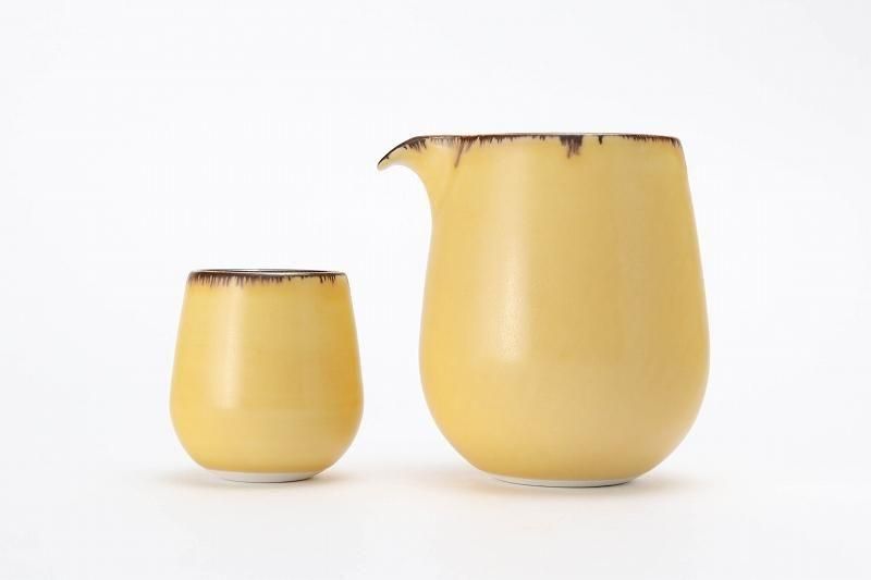 鮮やかで温かみのある風合いの黄マットの酒器セットです。
