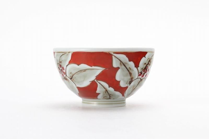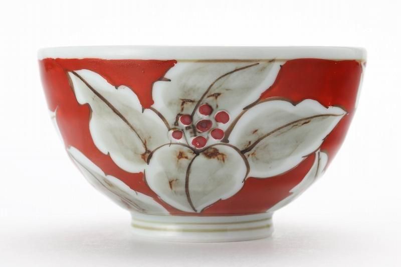 ☆仙右ェ門窯 彩染付濃花 茶付(赤)