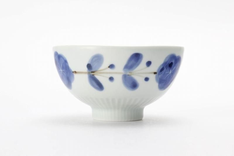 ☆皓洋窯 染付サビ花つなぎ しのぎ飯碗(大)