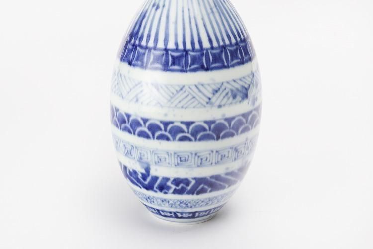 ★福泉窯 手造花瓶 染付乱線駒筋地紋