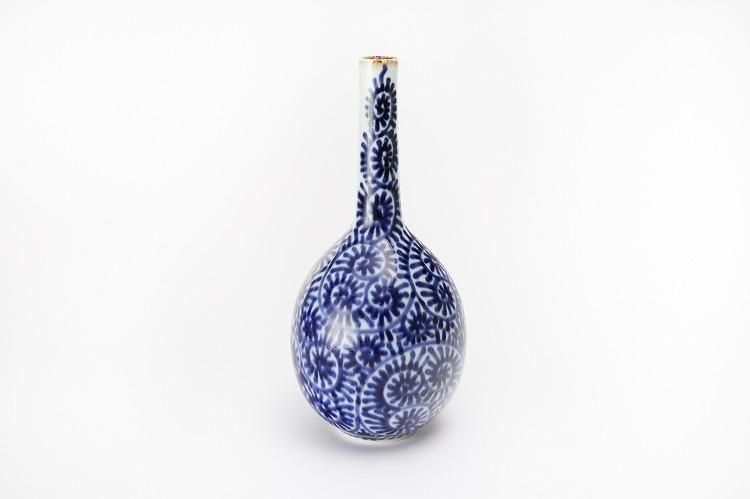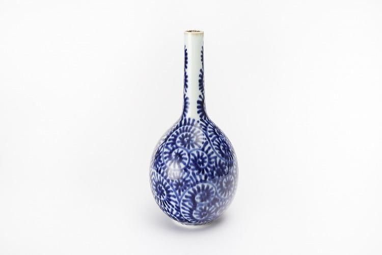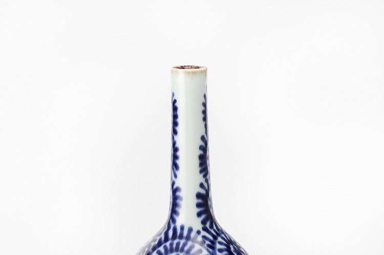 職人さんの技で丁寧に手描きされた花瓶は、落ち着いた染付と高級感のある佇まいです。