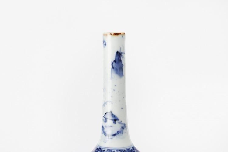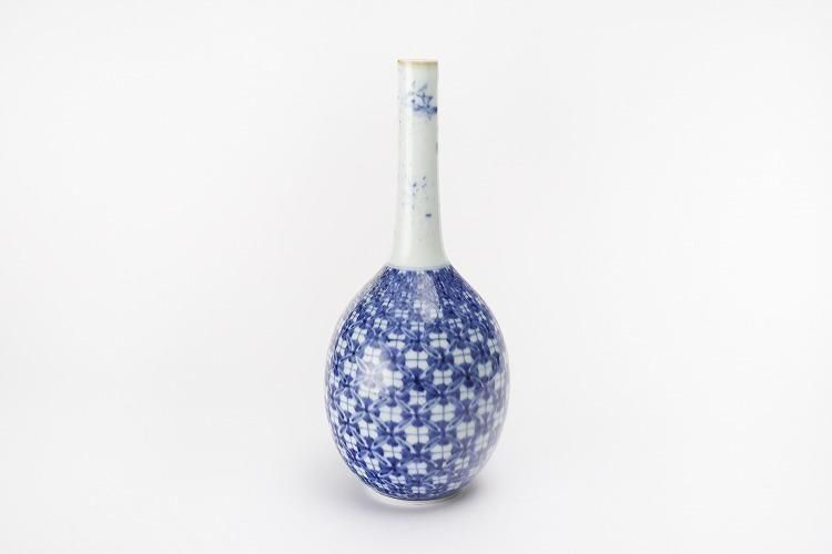 職人さんの技で丁寧に手描きされた花瓶は、落ち着いた染付と高級感のある佇まいです。