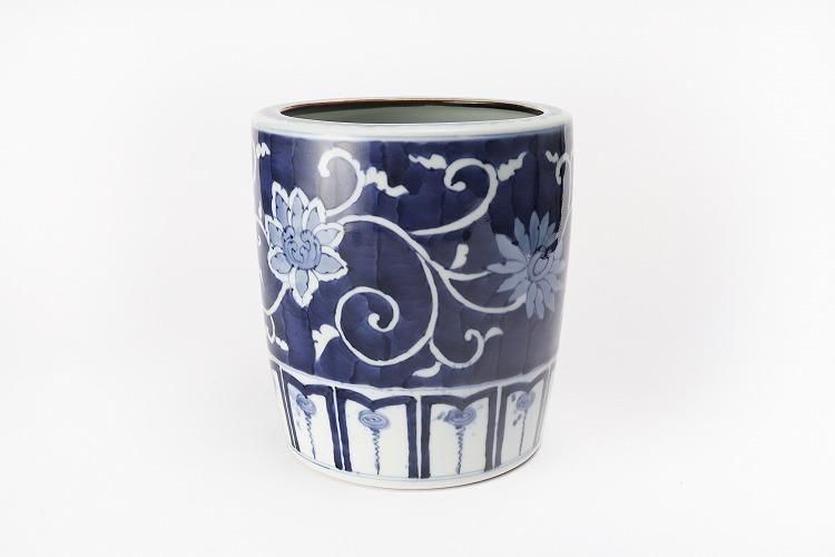 ★福泉窯 染付牡丹唐草 火鉢型ワインクーラー(大)