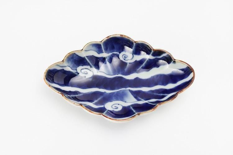•  > ★福泉窯 染付雲絵 菱型菊割向付