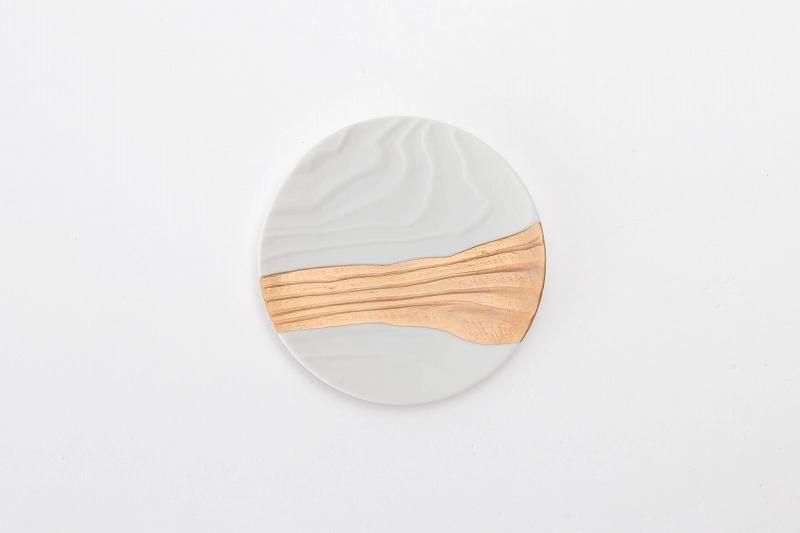 •  > ☆やま平窯 白マット中央ゴールド 木目小皿