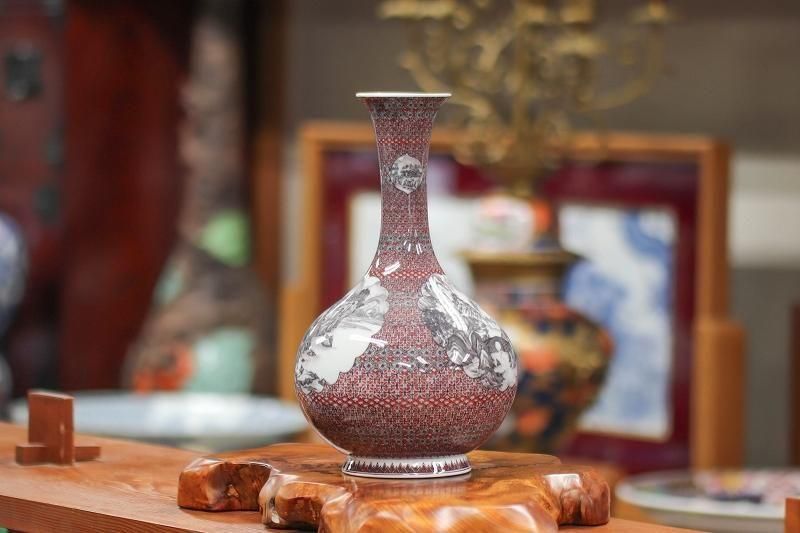 •  > □染龍窯 染付桜宝彫 三色彩花瓶