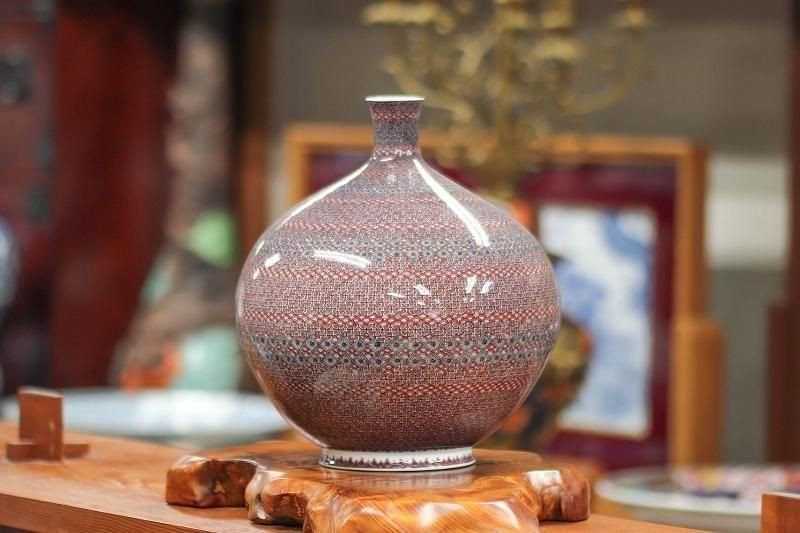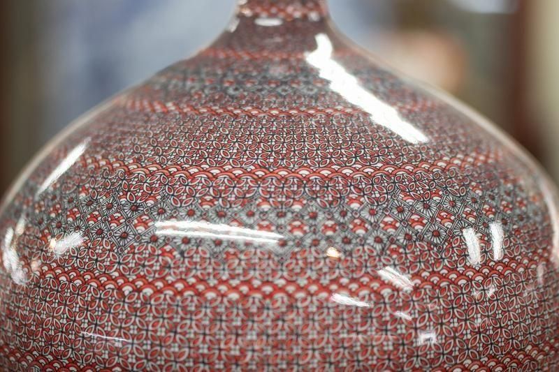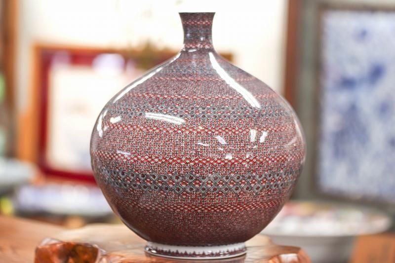 □染龍窯 染付二色彩 七宝紋様花瓶