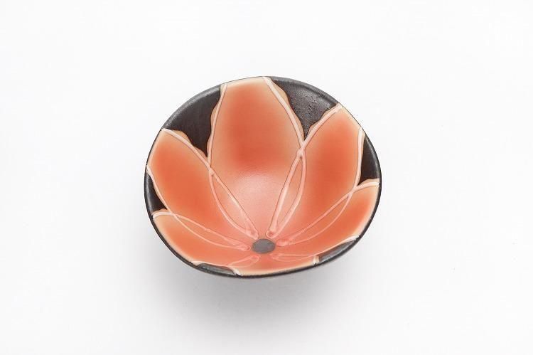 ★【20%OFF】アウトレット 大乗窯 黒土楽花紋(オレンジ) 三ッ足小鉢